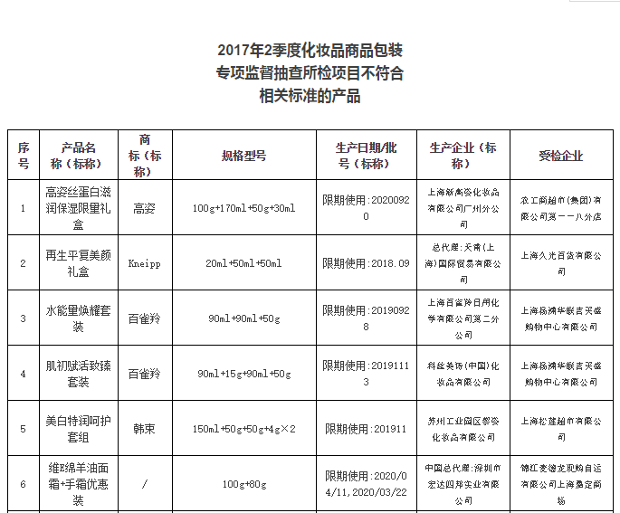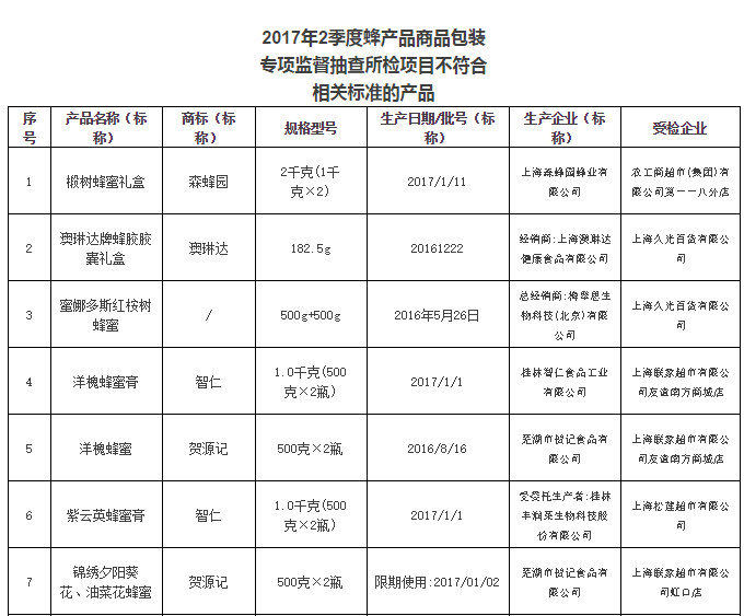 2017年2季度,上海市质监局对本市流通领域和生产领域的蜂产品、化妆品、保健食品进行了商品包装专项监督抽查。本次共抽查蜂产品30批次,不合格10批次;化妆品66批次,不合格14批次;保健食品73批次,不合格13批次。