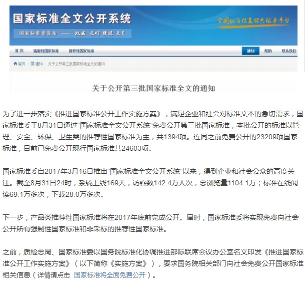 近日,国家标准委通过“国家标准全文公开系统”免费公开第三批国家标准共1394项。