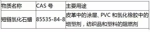 SCCP通常用作皮革中的涂层、PVC和氯化橡胶中的增塑剂,纺织品和塑料的阻燃剂,关于该物质的信息如下表所示