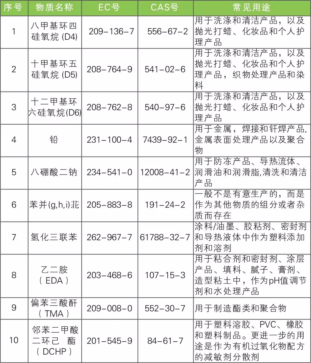 2018年6月27日,欧洲化学品管理局(ECHA)正式公布REACH法规第19批SVHC候选物质,将10种新的物质加入到高度关注物质(SVHCs)候选物质清单。被加入的10种物质中,TMA和DCHP为今年4月份确定成为SVHC候选物质的。 至此,SVHC候选物质清单共包含191种物质。